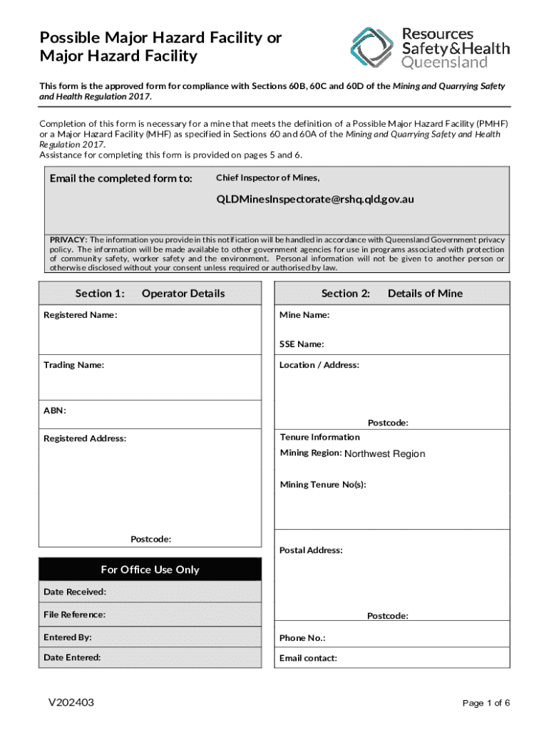 Get the free Notification Form for Major Hazard Facilities and Possible Major Hazard Facilities
