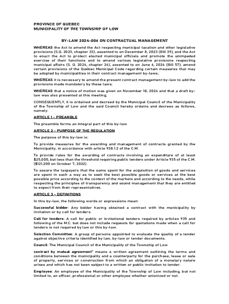 Get the free by-law 2024-006 on Contractual Management