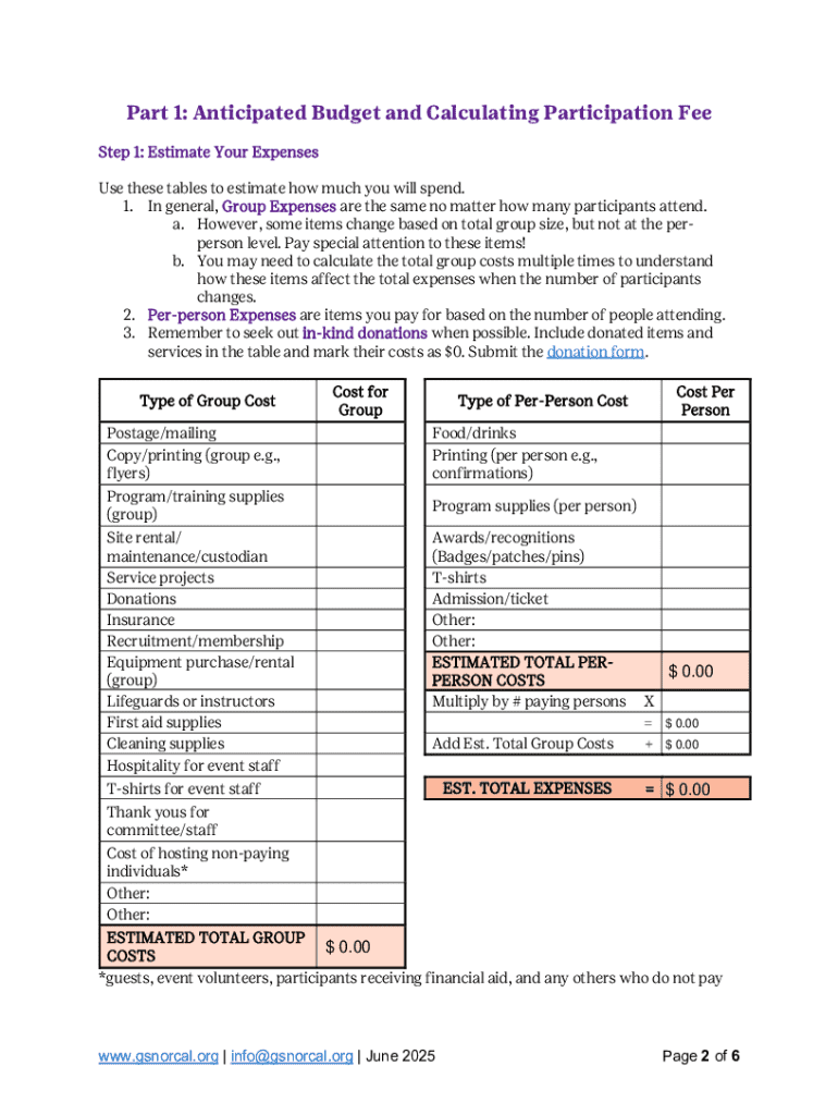 Get the free Budget Worksheet for Girl Scout Events