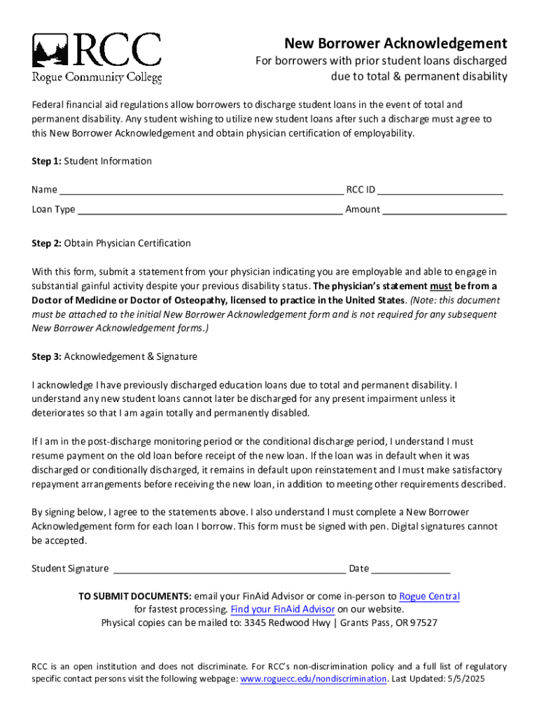 Get the free New Borrower Acknowledgement