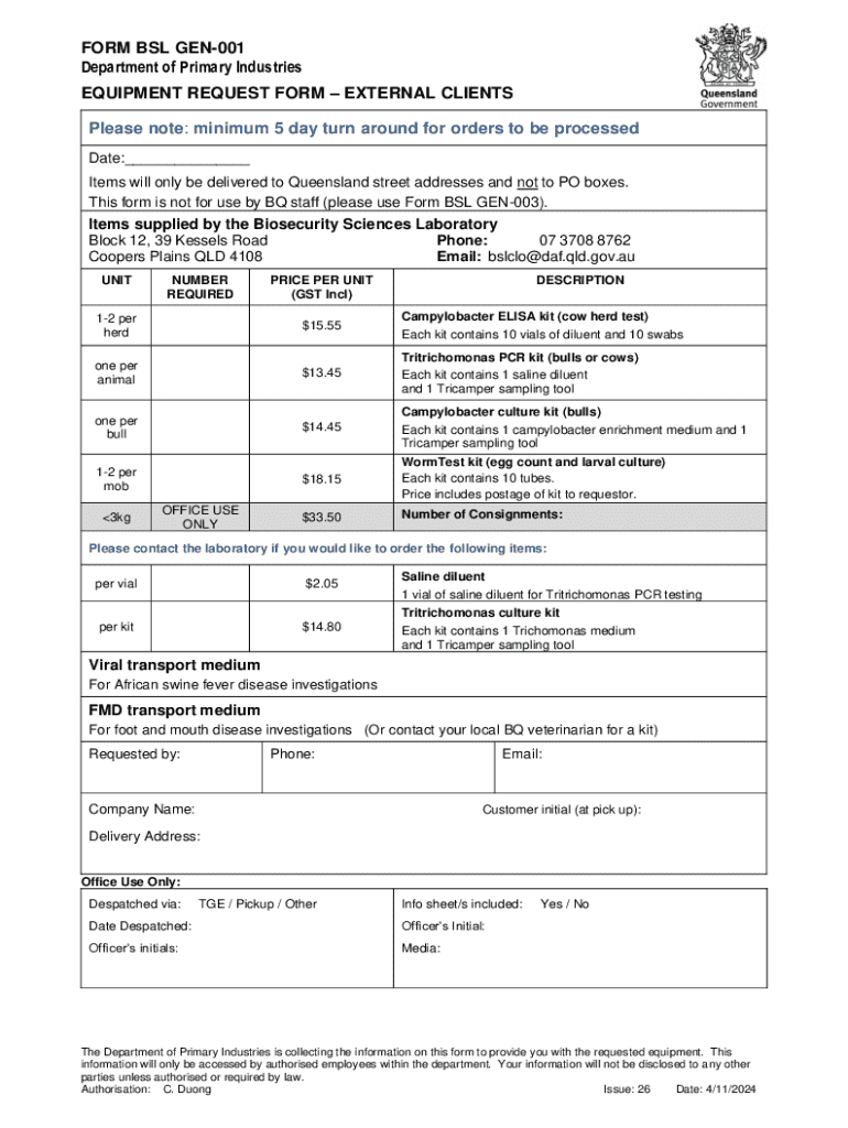 The bsl gen-001 form serves as a crucial document in various administrative and compliance processes. This form is specifically designed to gather key information required for effective document management and operational efficiency within organizations. By standardizing how data is collected and reported, the bsl gen-001 form streamlines communication and minimizes the risk of errors.