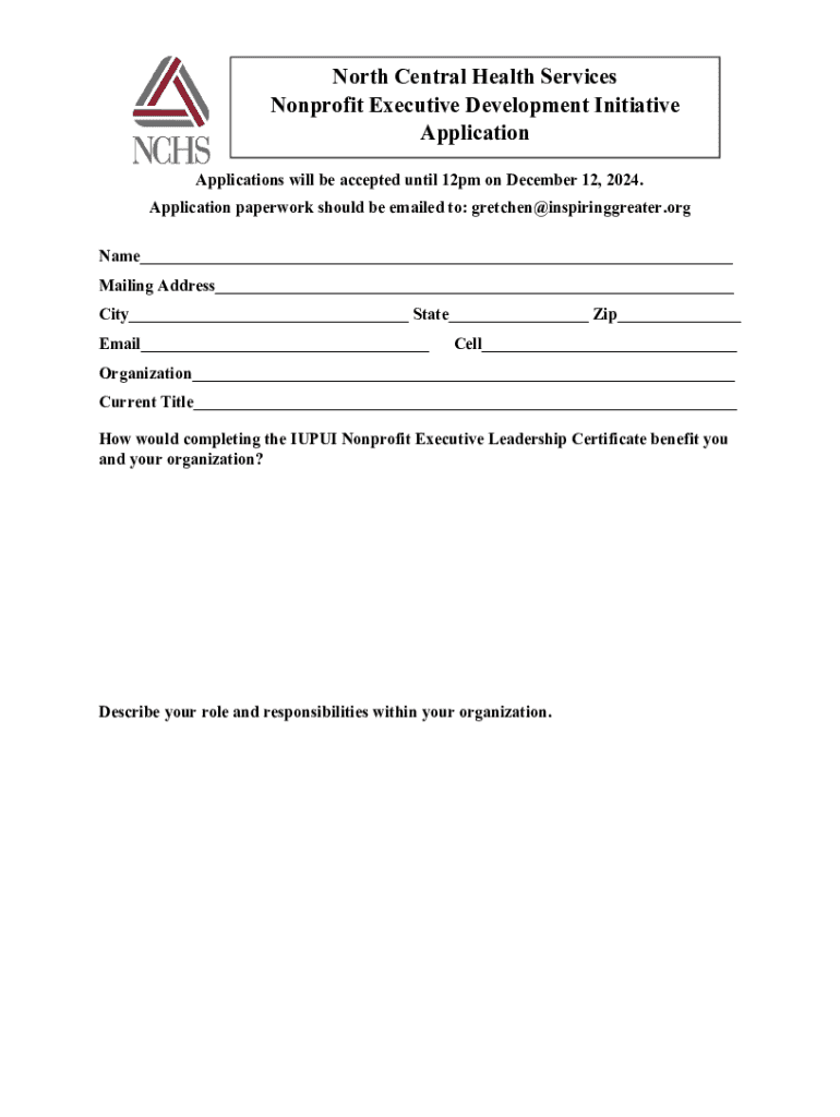 Get the free North Central Health Services Nonprofit Executive Development Initiative Application