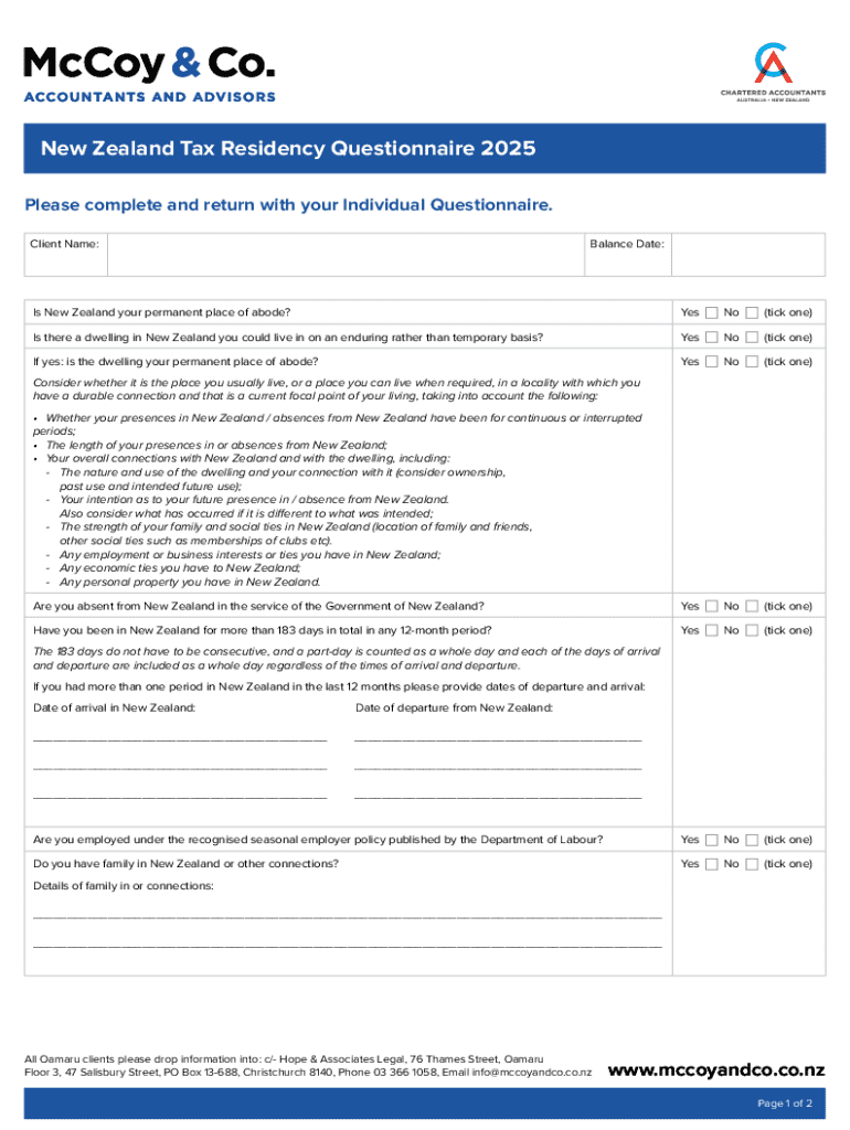 Get the free New Zealand Tax Residency Questionnaire 2025