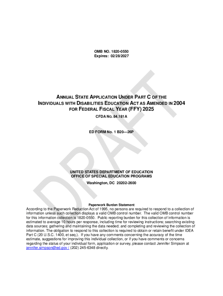 Get the free Omb No. 1820-0550 Annual State Application Part C - osse dc
