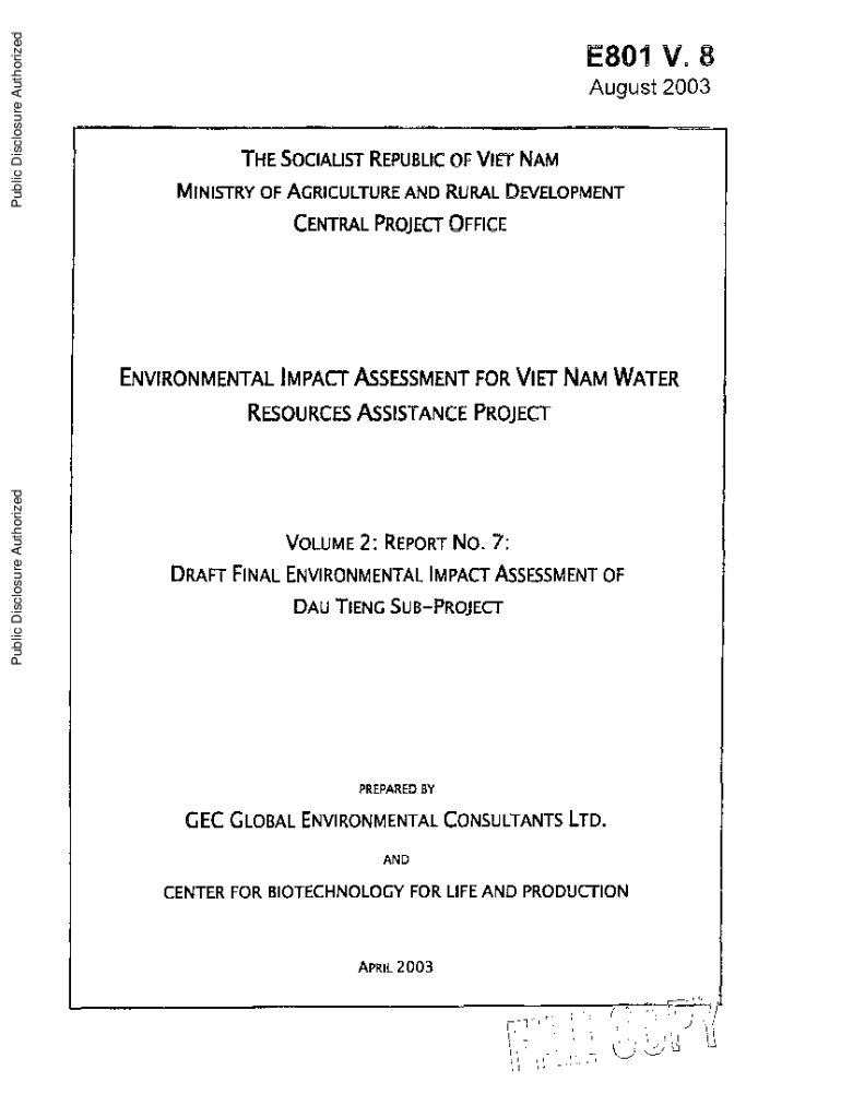 Get the free Environmental Impact Assessment for Viet Nam Water Resources Assistance Project