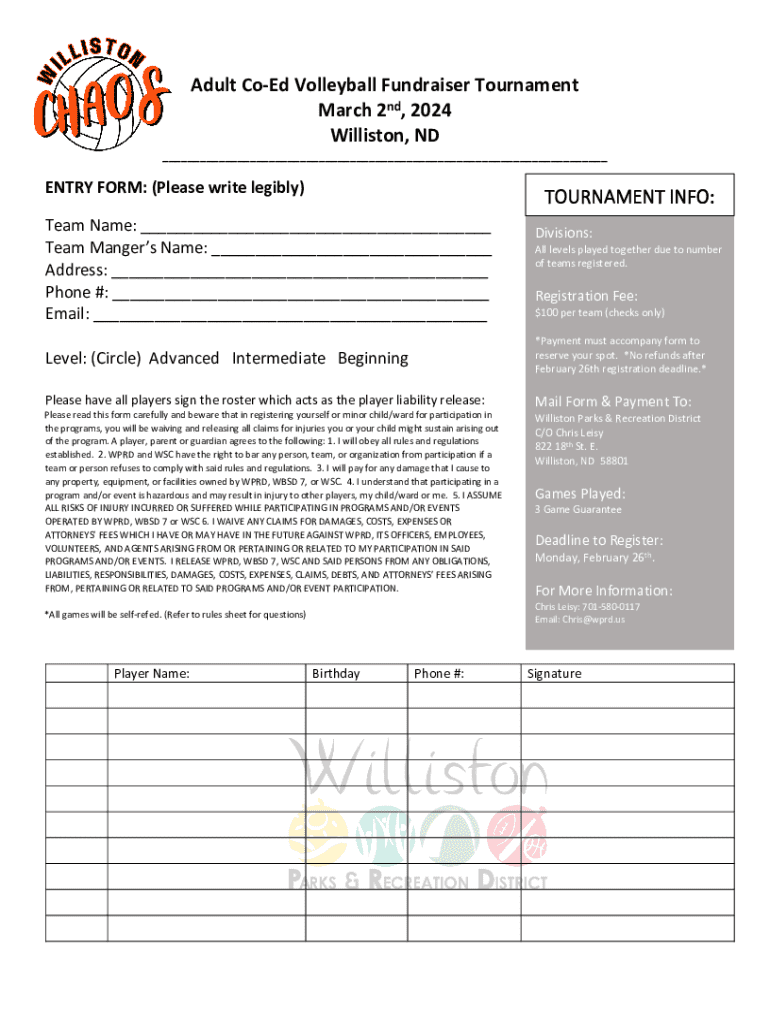 Adult Co-Ed Volleyball Fundraiser Form: A Comprehensive Guide