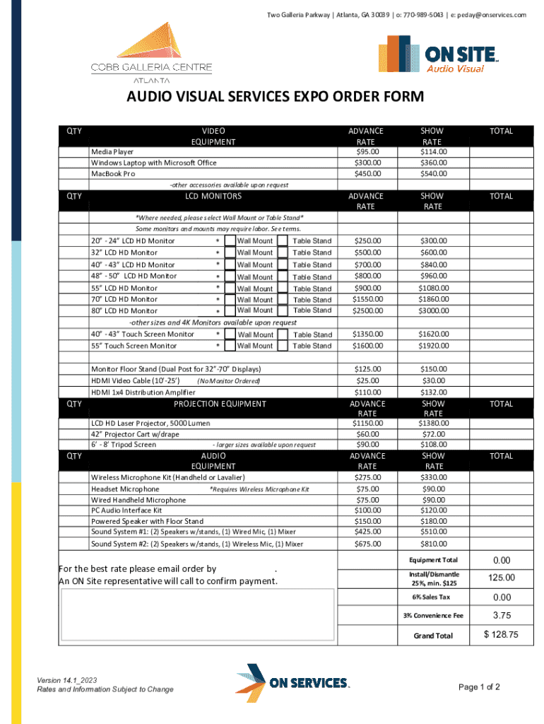 Get the free Audio Visual Services Expo Order Form