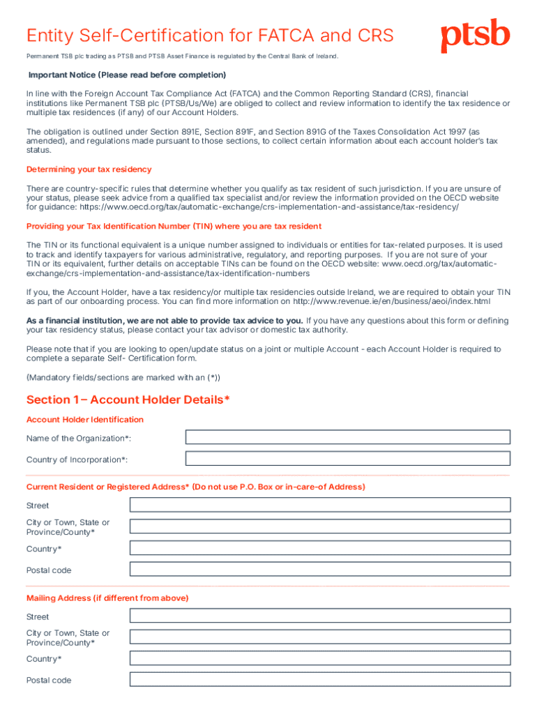 This document is used by financial institutions to collect and certify information related to an entity\'s tax residency for compliance with the Foreign Account Tax Compliance Act (FATCA) and the