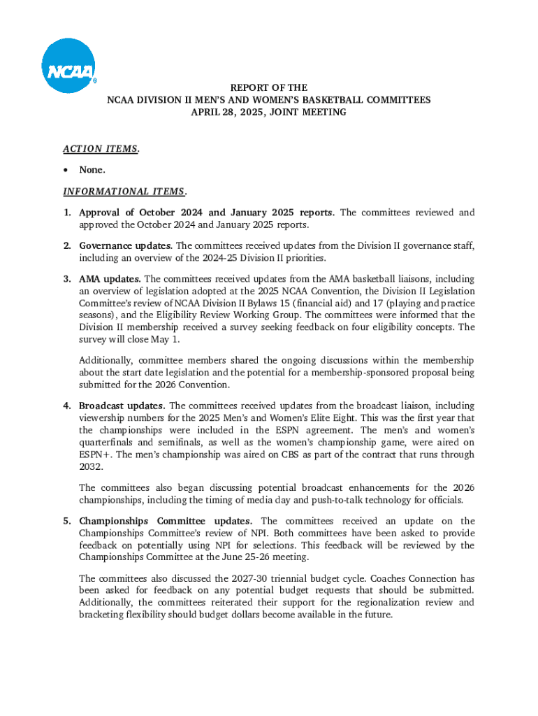 Get the free Report of the Ncaa Division Ii Men’s and Women’s Basketball Committees