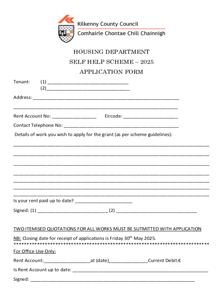 Completing the Self Help Scheme 2025 form can be a straightforward process if approached methodically. To start, gather all necessary information to fill out the form accurately. Then, access the online application portal where the form is hosted, ensuring you have a stable internet connection.