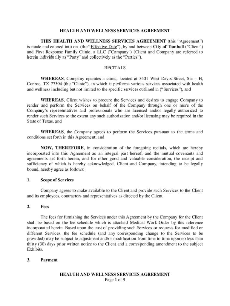 Get the free Health and Wellness Services Agreement
