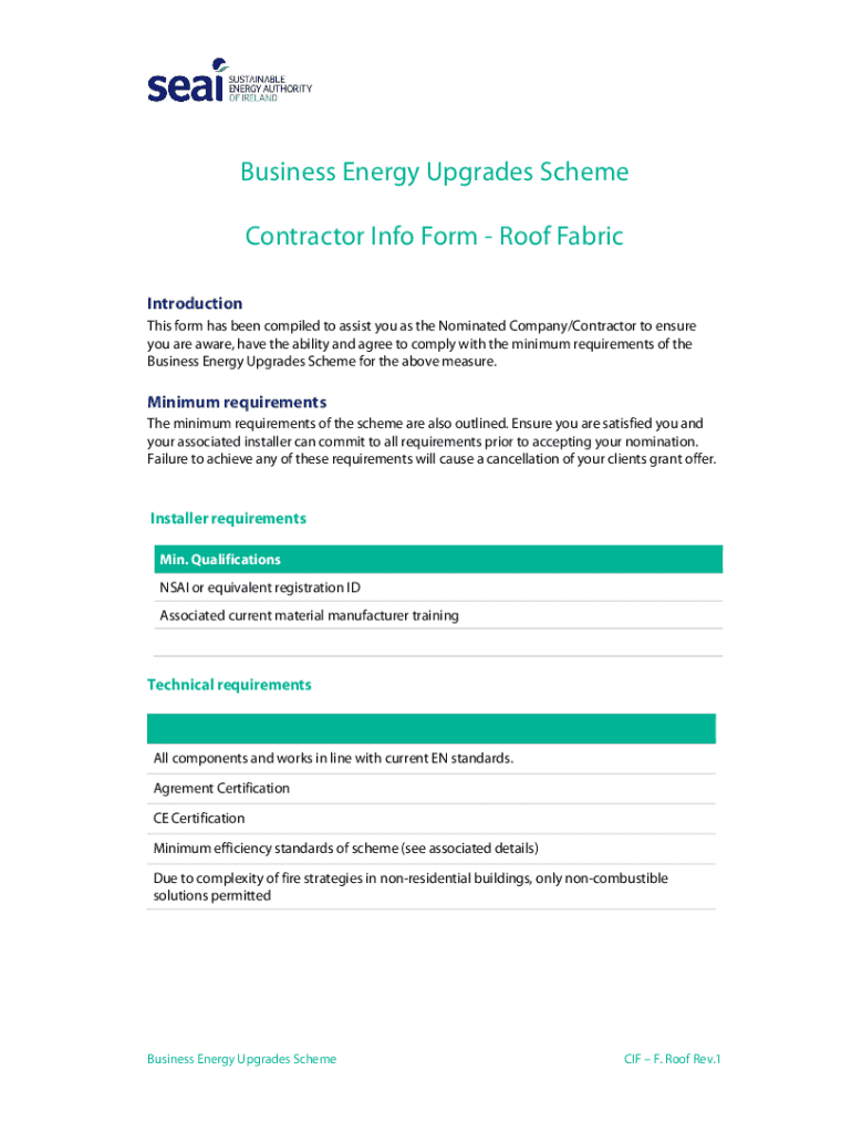 Get the free Business Energy Upgrades Scheme Contractor Info Form - Roof Fabric