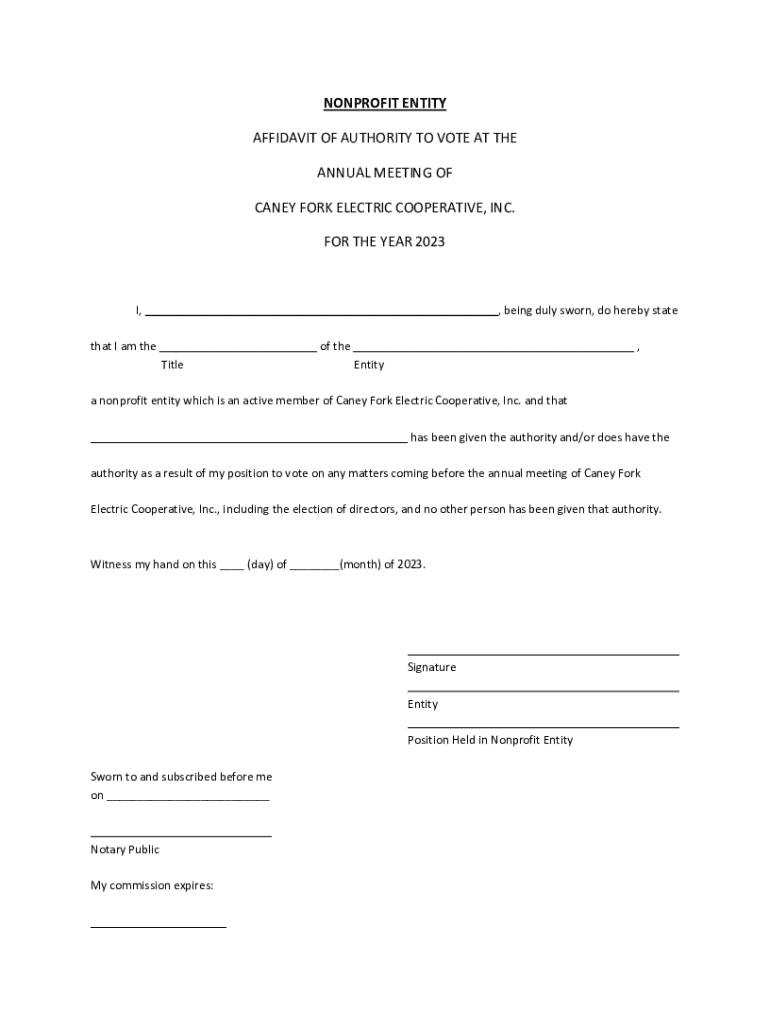 Get the free Nonprofit Entity Affidavit of Authority to Vote