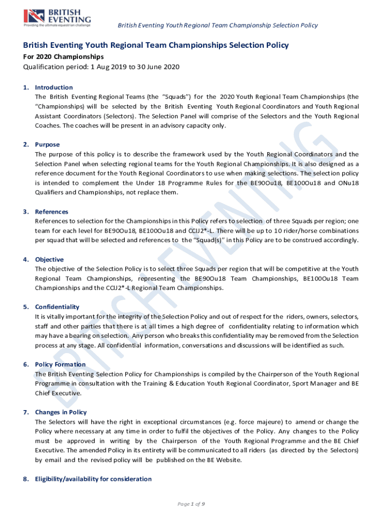 Get the free British Eventing Youth Regional Team Championship Selection Policy