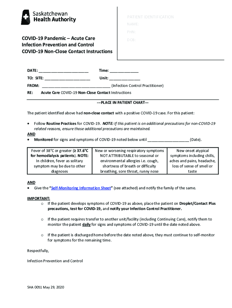Get the free Patient Identification Covid-19 Non-close Contact Instructions