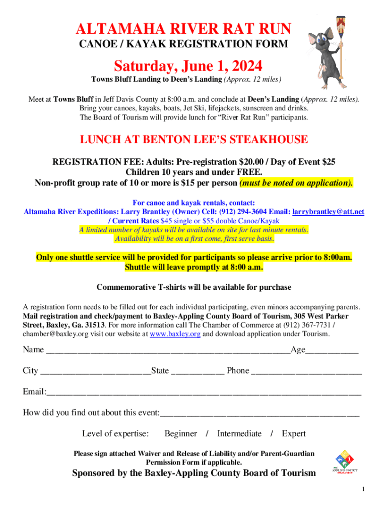 Get the free Altamaha River Rat Run Canoe / Kayak Registration Form