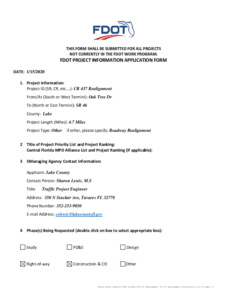 How to fill out fdot project information application