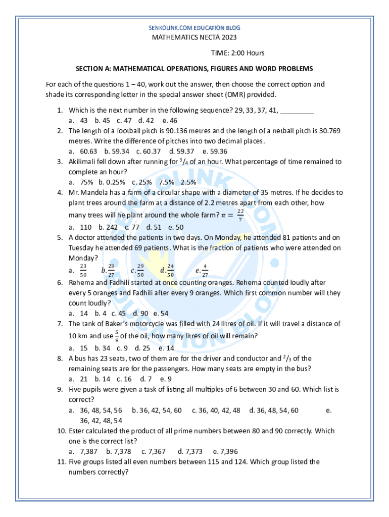 Get the free Necta 2023 Examinations