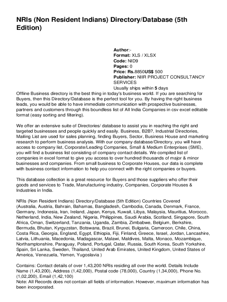 Get the free Nris (non Resident Indians) Directory/database (5th Edition)