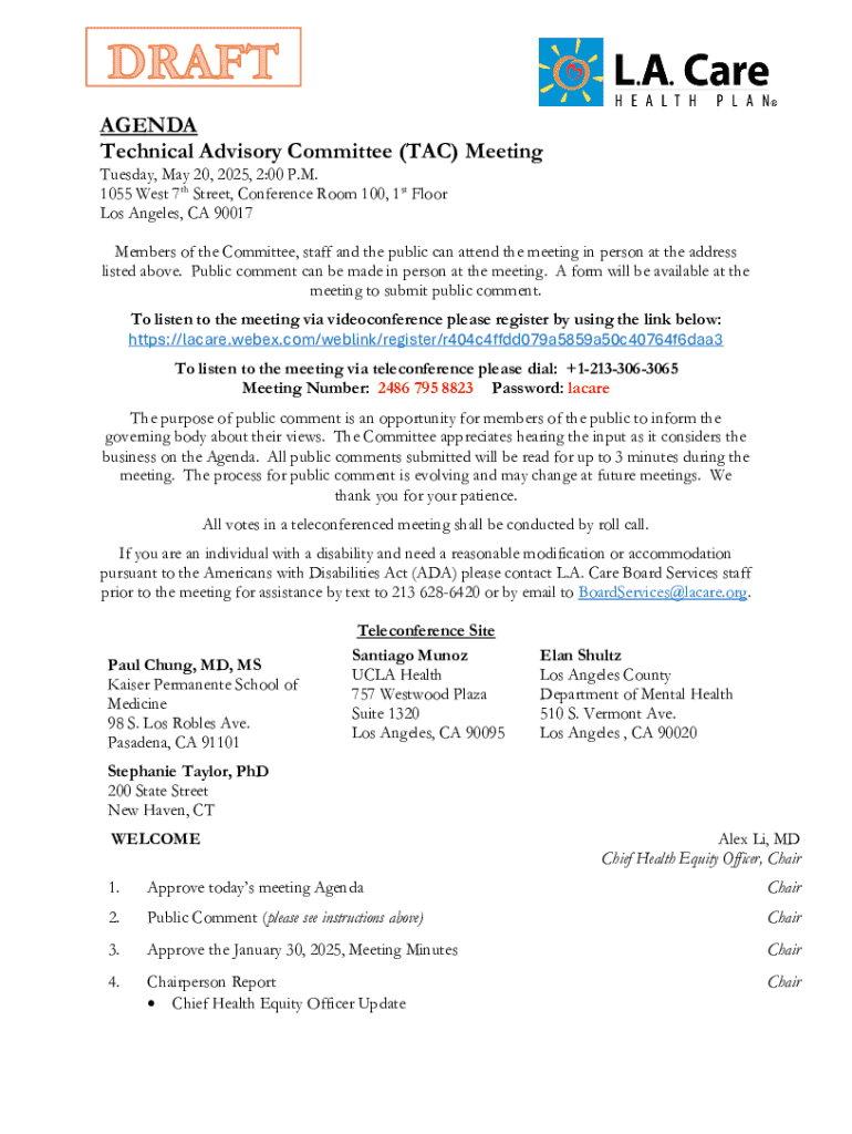 Get the free Technical Advisory Committee Meeting Agenda