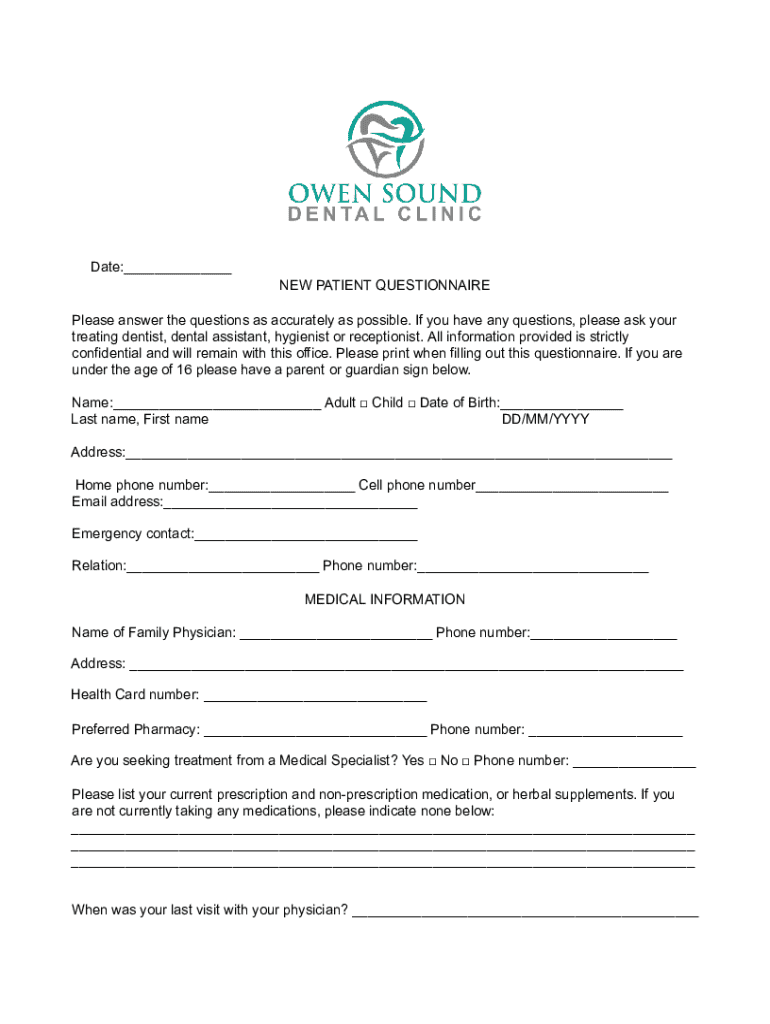 How to fill out new patient questionnaire