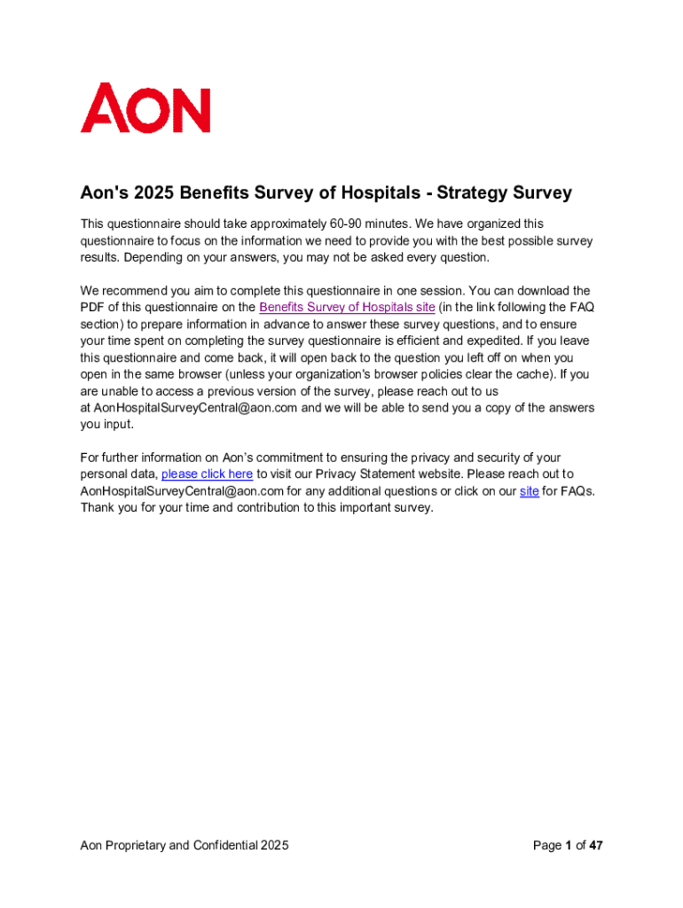 Get the free Aon's 2025 Benefits Survey of Hospitals - Strategy Survey