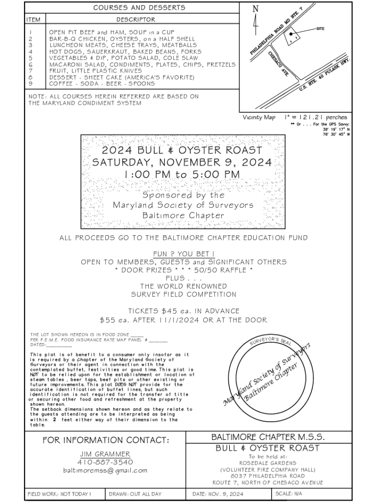 To facilitate organization and participation, the Bull & Oyster Roast Form serves as a central tool for registration and ticketing. This form is significant for expressing intent to participate while also managing essential details like ticket types, food selections, and special requests. It streamlines the attendee experience, ensuring that everyone can join in on the festivities with ease.