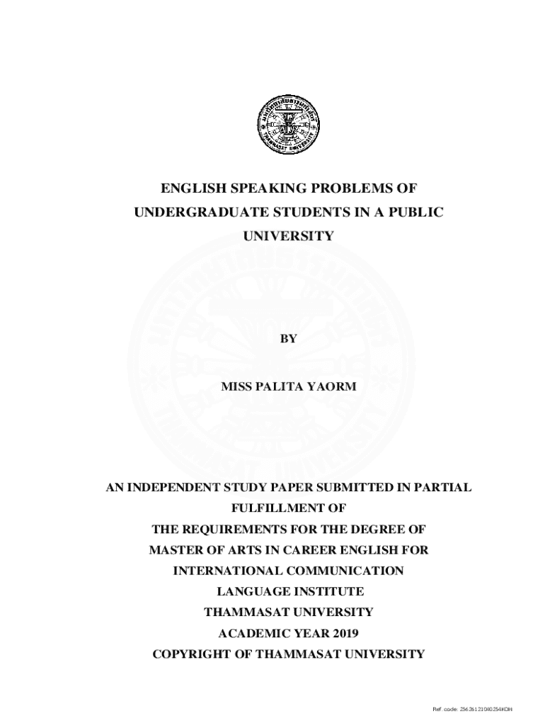 Get the free English Speaking Problems of Undergraduate Students in a Public University