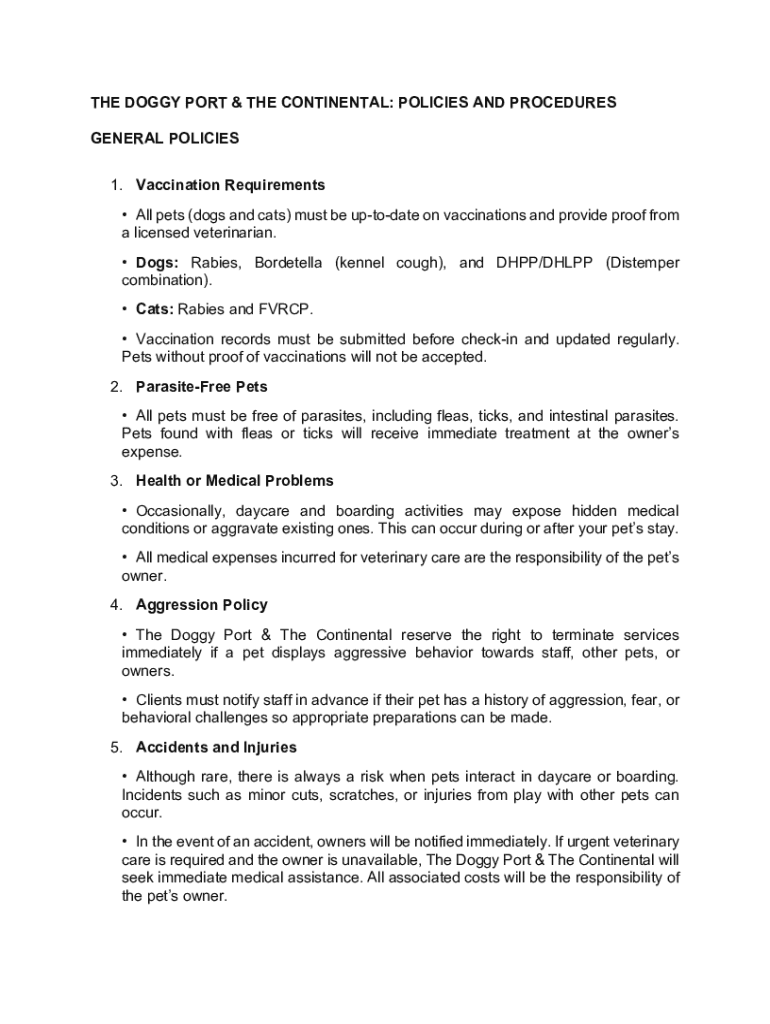 Get the free the Doggy Port & the Continental Policies and Procedures