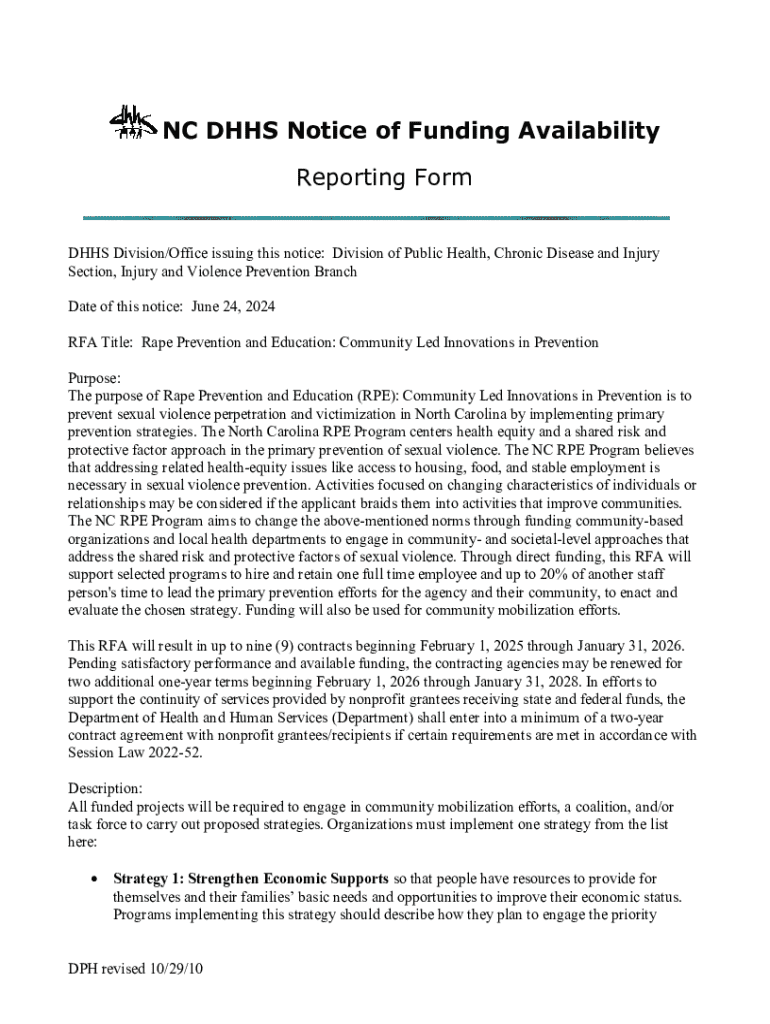 Get the free Nc Dhhs Notice of Funding Availability Reporting Form