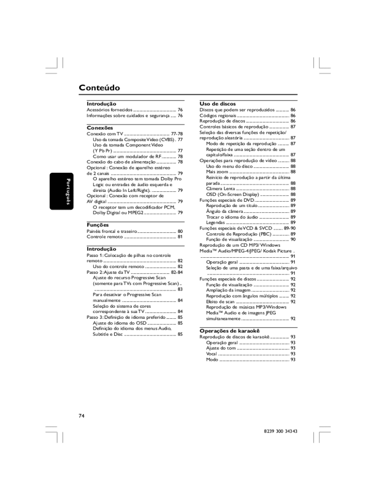 Este documento contém informações sobre o uso, configuração e manutenção de um DVD player, incluindo especificações técnicas e soluções de problemas.