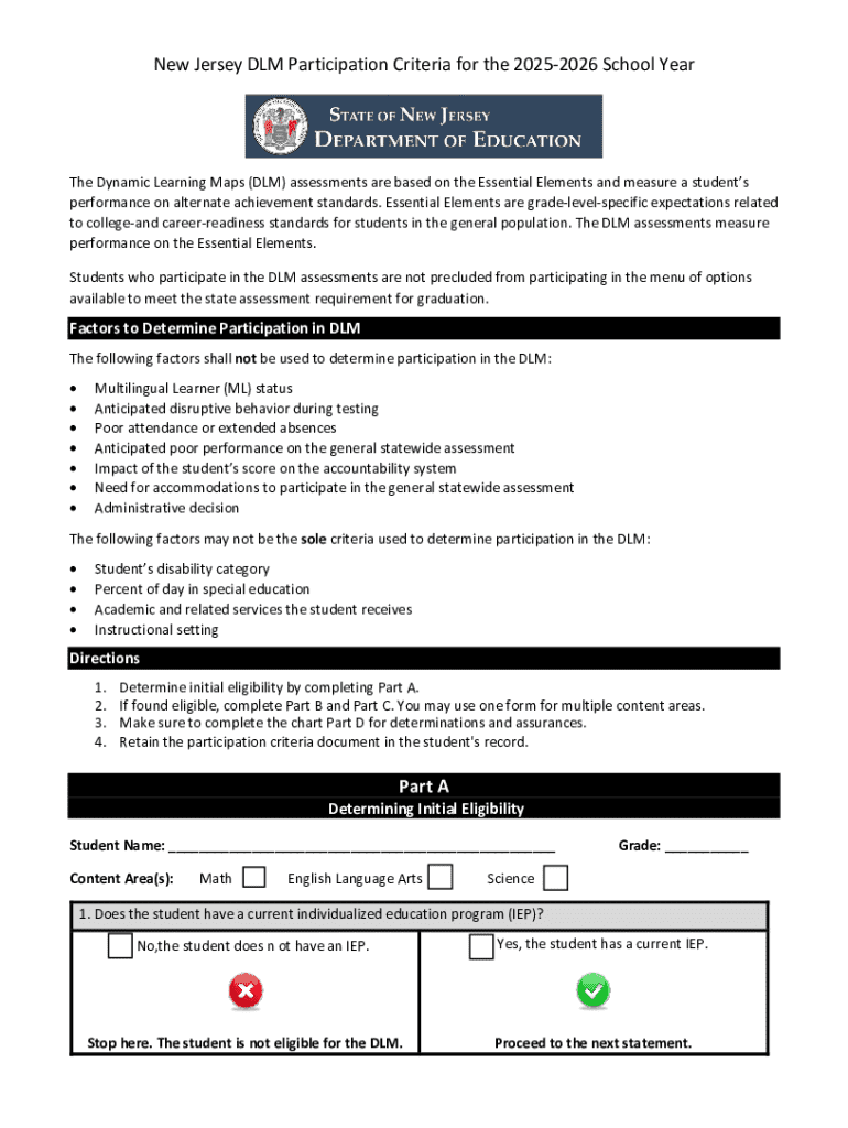 Get the free New Jersey Dlm Participation Criteria for the 2025-2026 School Year