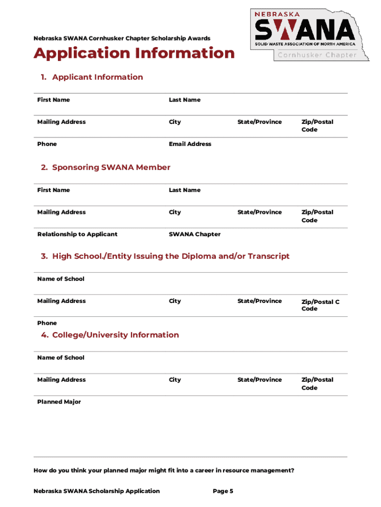 How to fill out nebraska swana cornhusker chapter