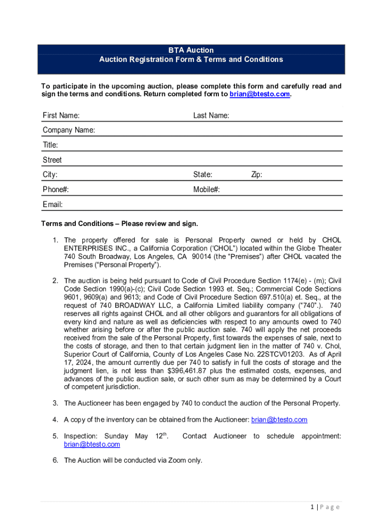 The BTA Auction Form serves as a crucial document in the bidding process, designed to streamline how bidders submit their offers. Its primary purpose is to collect essential information about bidders and the items they wish to bid on, ensuring that the auction process is fair and organized. The importance of this form cannot be overstated as it lays the foundation for successful transactions and legal agreements in various auction types, whether they are estate auctions or charity events.