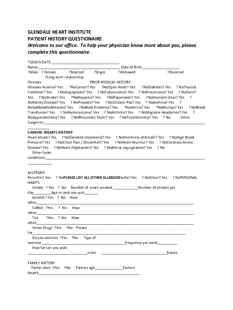Typically, all new patients and sometimes existing patients are required to fill out a patient history questionnaire before receiving medical care or during routine check-ups.