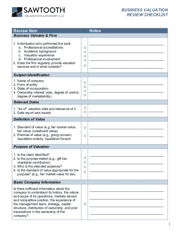 Business Valuation Review Checklist Form: A Comprehensive Guide