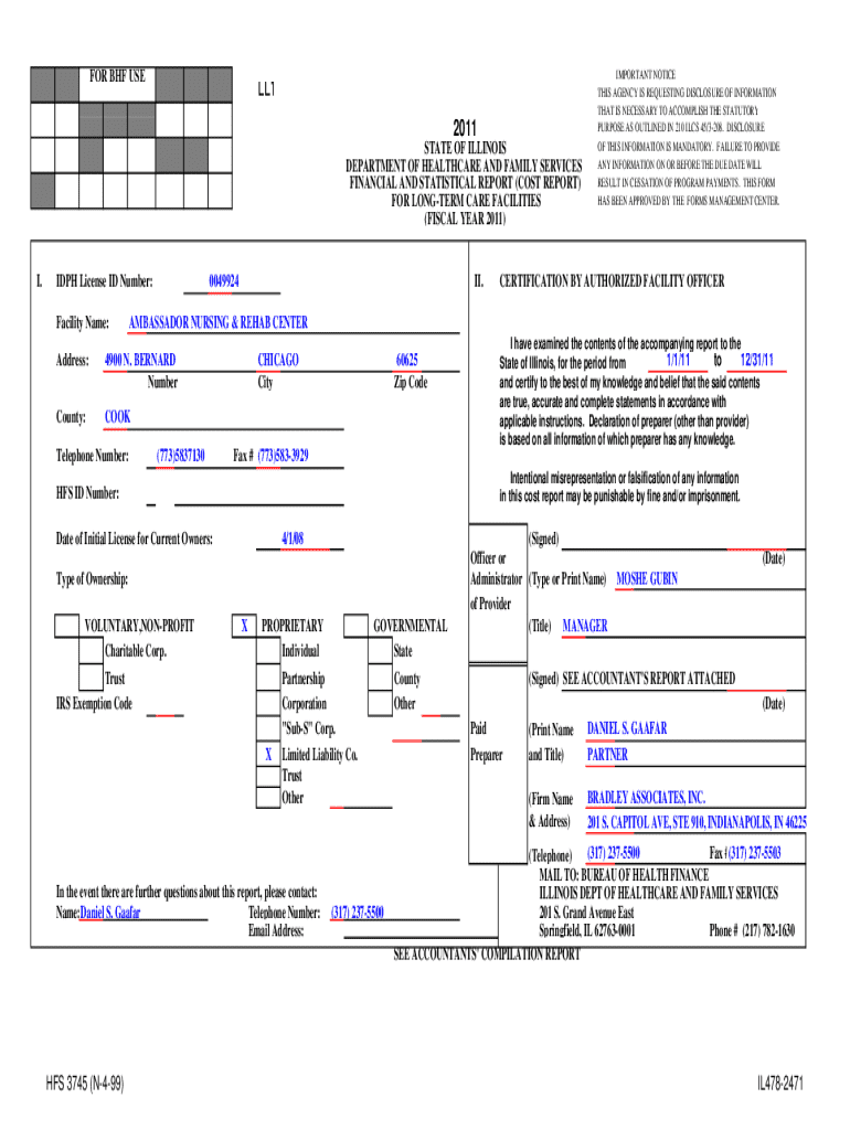 Get the free Financial and Statistical Report for Long-term Care Facilities - hfs illinois