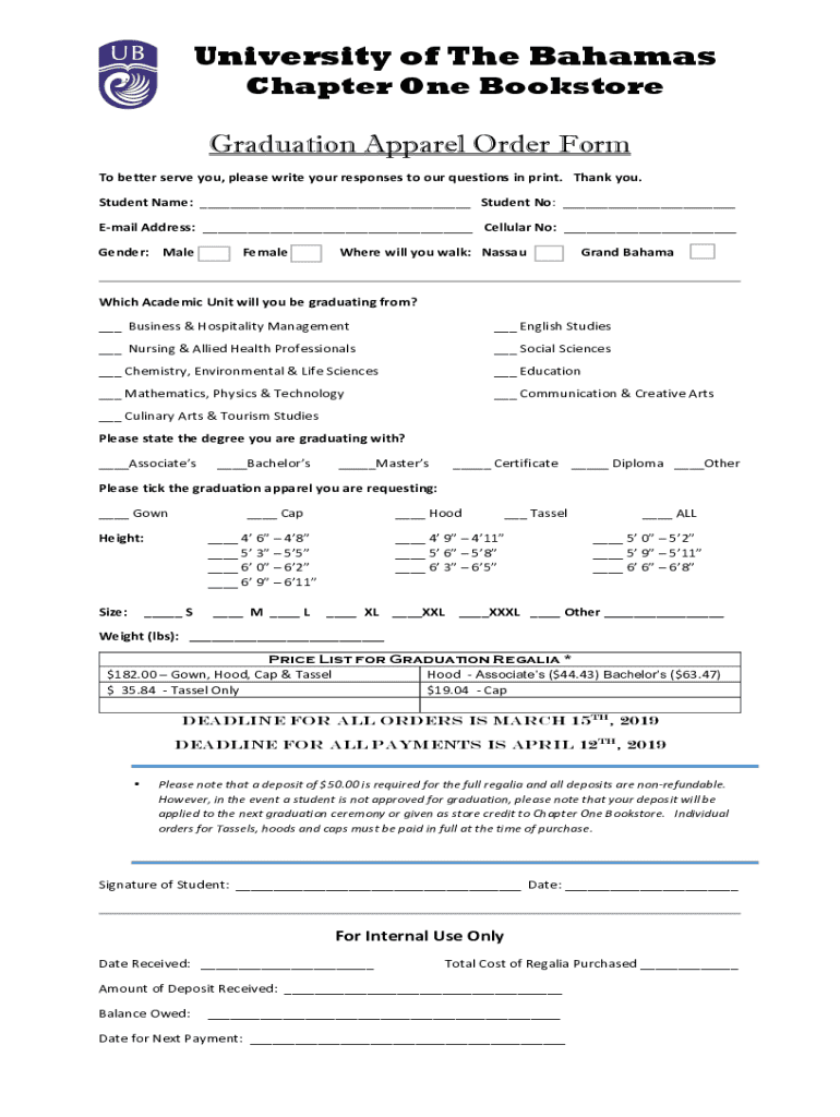Get the free Graduation Apparel Order Form