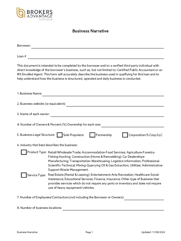 Edit your business narrative form online