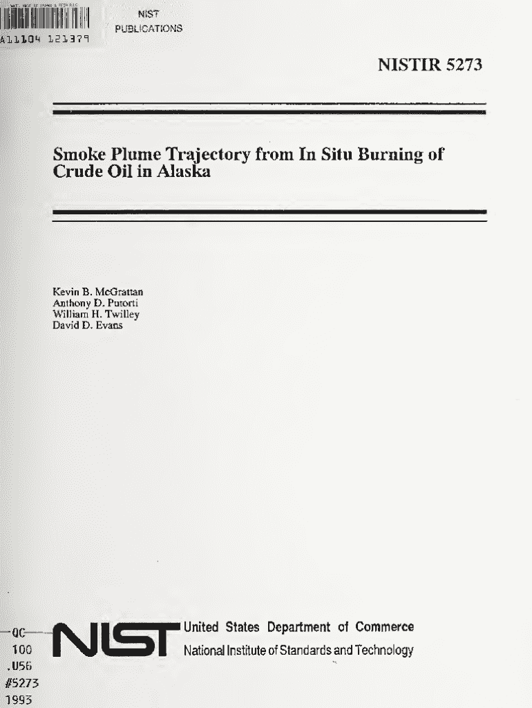 This document presents experimentation, analysis, and modeling to predict downwind smoke dispersion from crude oil fires in Alaska. It details the burning characteristics, smoke yields, and plume