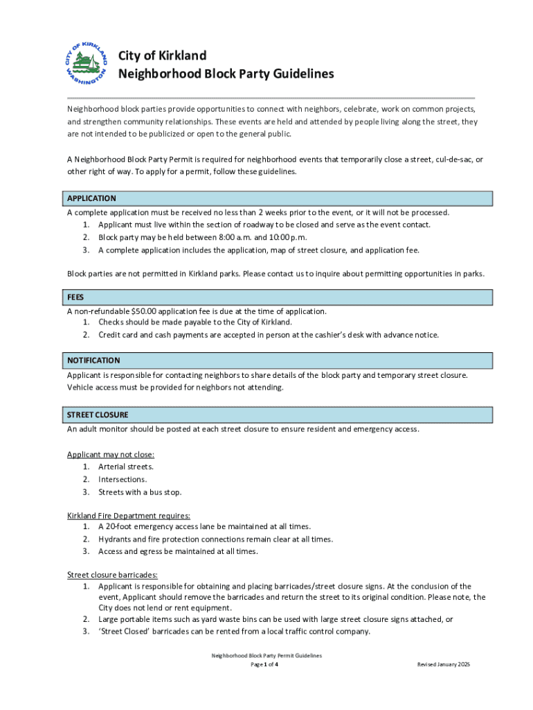 Addresses common inquiries surrounding neighborhood block party permits. For instance, if you need to change your event date, it's vital to communicate promptly with your local authority, and you may be required to submit an amended application. Regarding entry fees, block parties generally aim to foster community spirit, so charging for entry or activities may conflict with the event's purpose unless specifically authorized. In case of a permit denial, reach out to your local office for guidance on how to rectify the issues presented. Lastly, many jurisdictions do require a permit even for small gatherings to ensure safety and compliance.