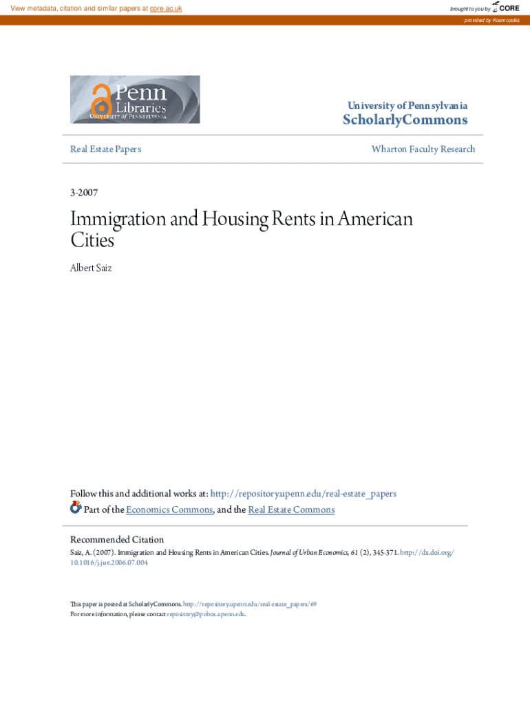 Get the free Immigration and Housing Rents in American Cities