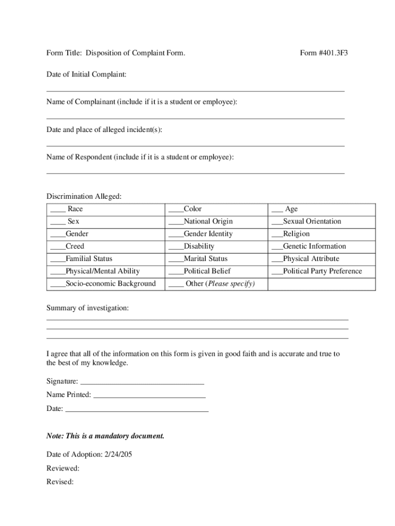 A disposition of complaint form is a crucial document used in various sectors, including corporate, governmental, and non-profit organizations. It serves as an official record of complaints received, the investigations conducted, findings, and resolutions proposed. This form not only helps in tracking issues but also ensures accountability and transparency in the complaint resolution process. The importance of this form cannot be overstated, as it plays a significant role in ensuring that complaints are handled effectively and efficiently.