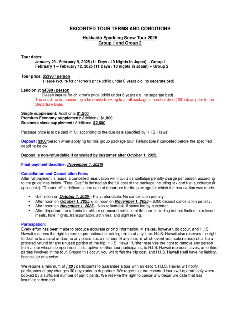 Get the free Escorted Tour Terms and Conditions