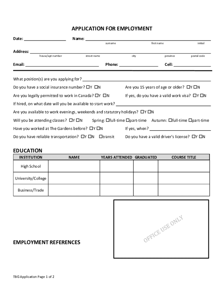 Following personal information, employment history is typically required. This section allows candidates to outline their past work experience, including job titles, employers, dates of employment, and responsibilities. Additionally, educational background is requested, highlighting degrees obtained and any relevant coursework or honors. Finally, most applications will ask for references—names and contact information of individuals who can vouch for the candidate’s professional abilities.