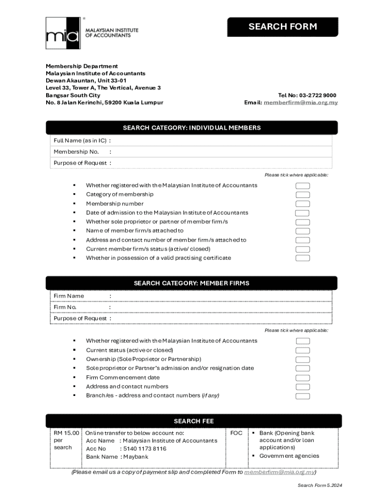 A search form acts as an essential tool within digital document management systems, providing users with a structured way to locate and manage information. It typically includes input fields where users can specify their search criteria, directly enhancing the document retrieval process. The primary function of a search form is to streamline access to needed documents, ensuring that users can quickly find specific files without wading through irrelevant data.