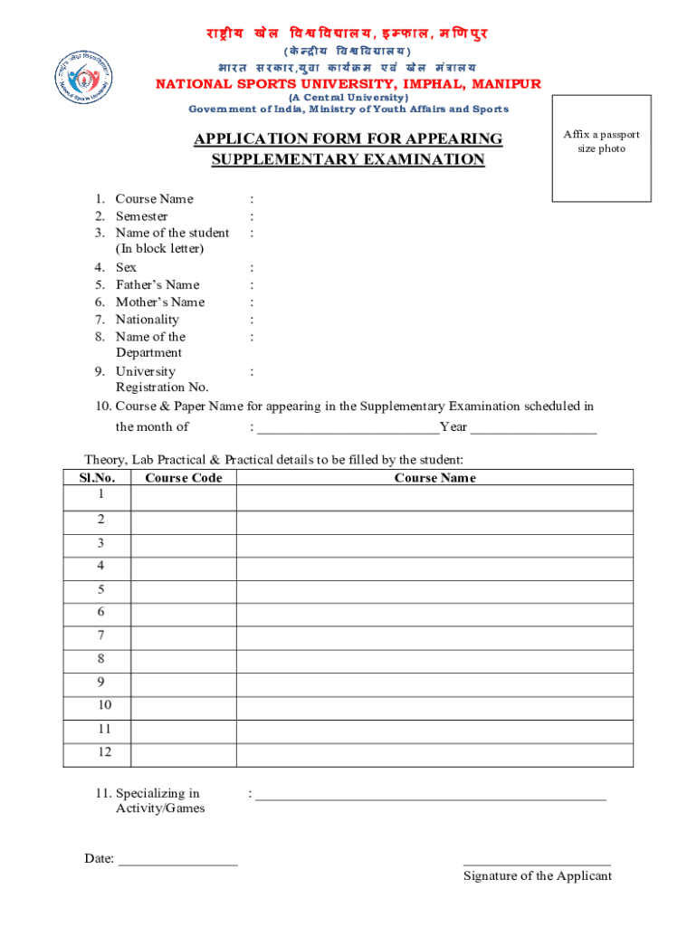 Get the free Application Form for Appearing Supplementary Examination