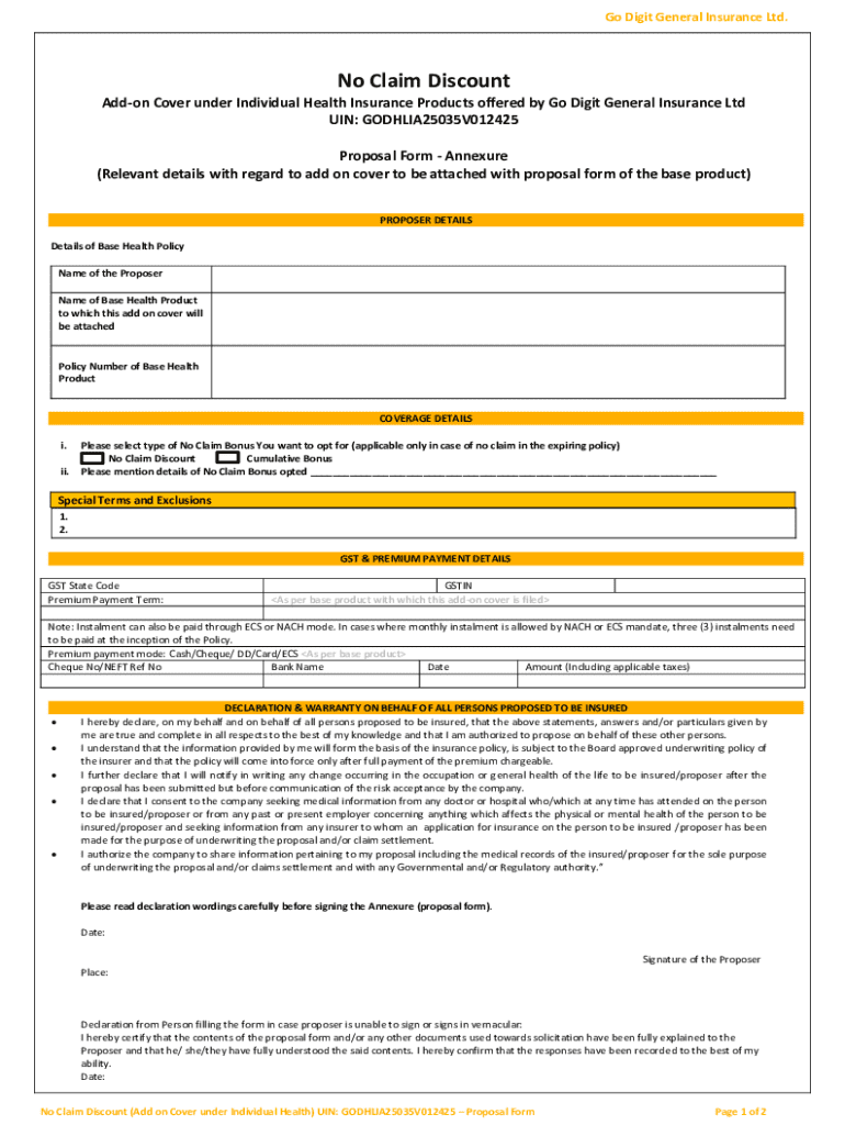 Completing Your No Claim Discount Proposal Form: A Comprehensive Guide