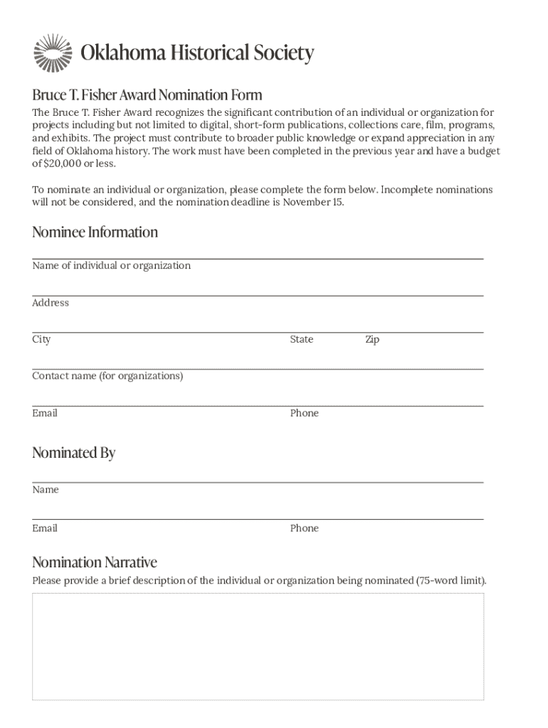 Get the free Bruce T. Fisher Award Nomination Form