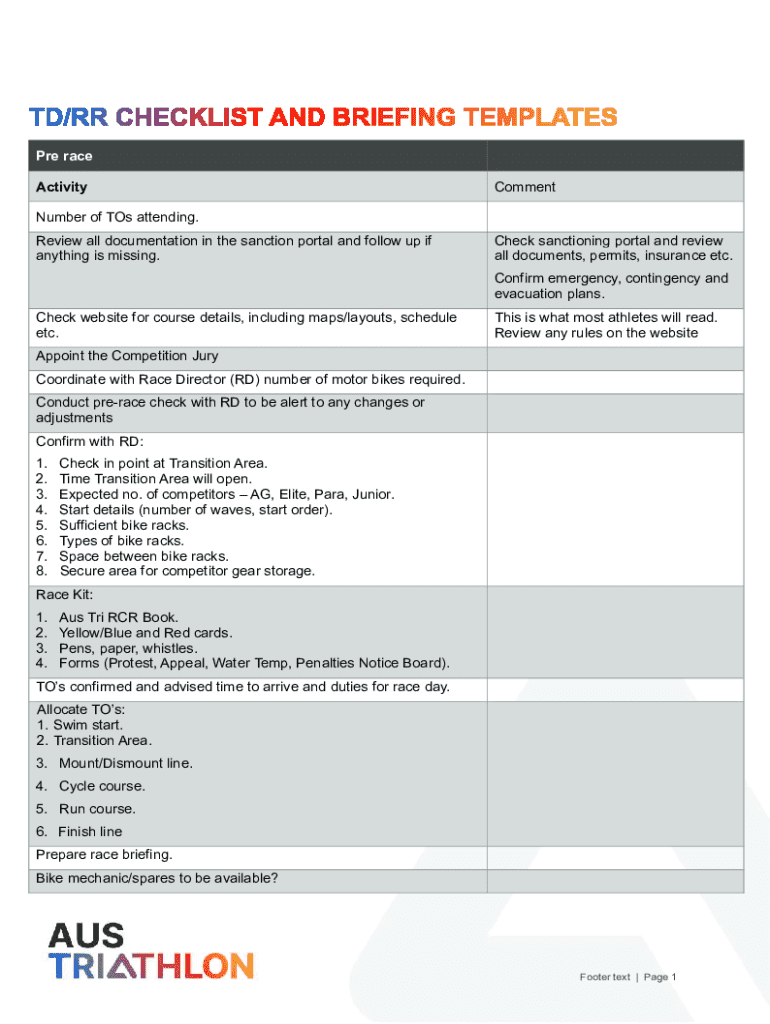 Get the free NickSam - can you format a bit better TD RR Checklist and Briefing Templates May 2024